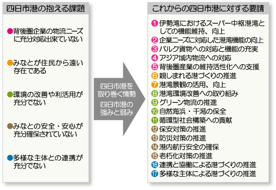 これからの四日市港には、これら17項目の要請に適切に対応していくことが求められています。