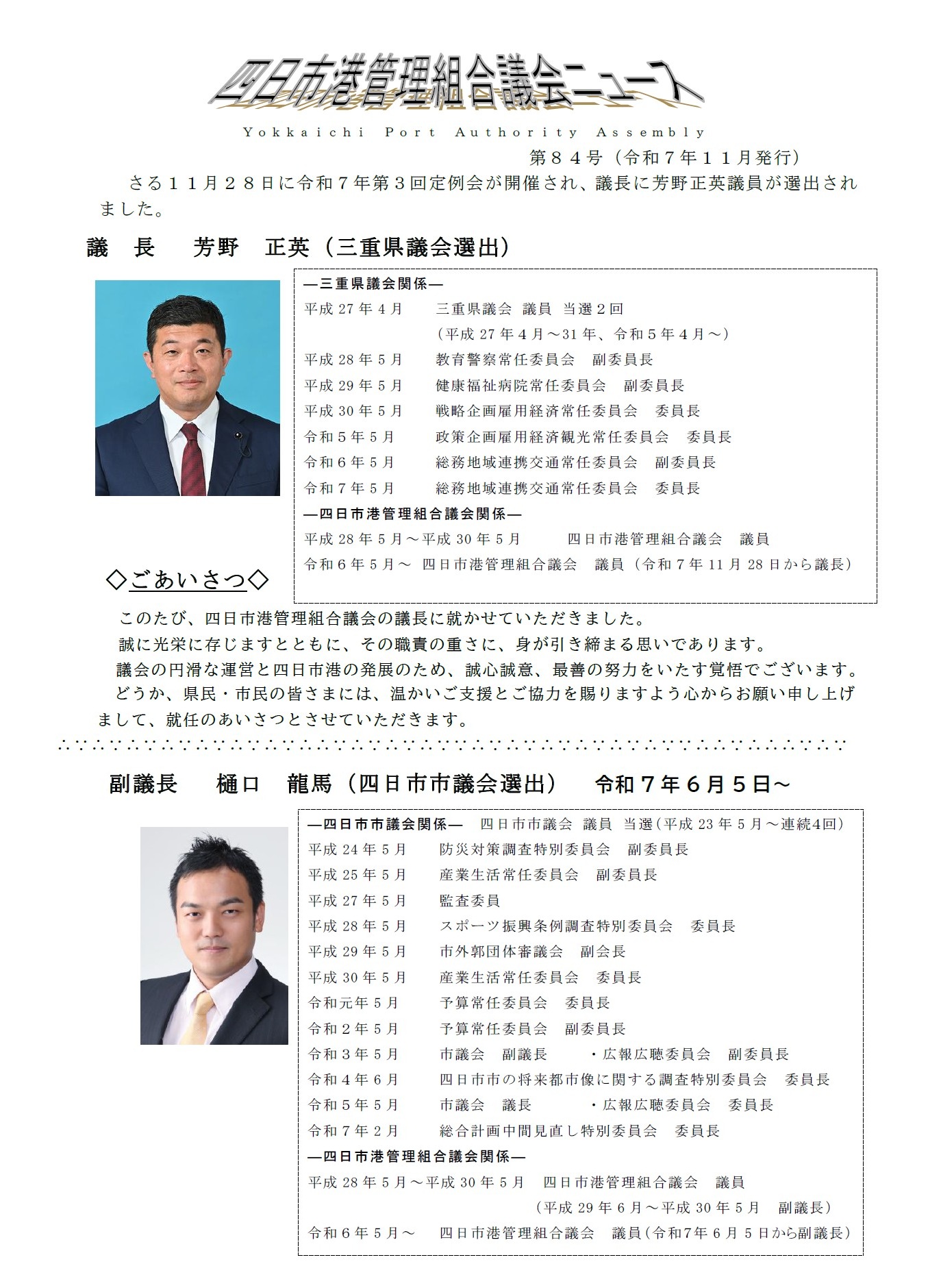 当サイトでは、四日市港管理組合議会 臨時会・定例会の会議概要などを「議会ニュース」として、平成20年度から掲載しています。