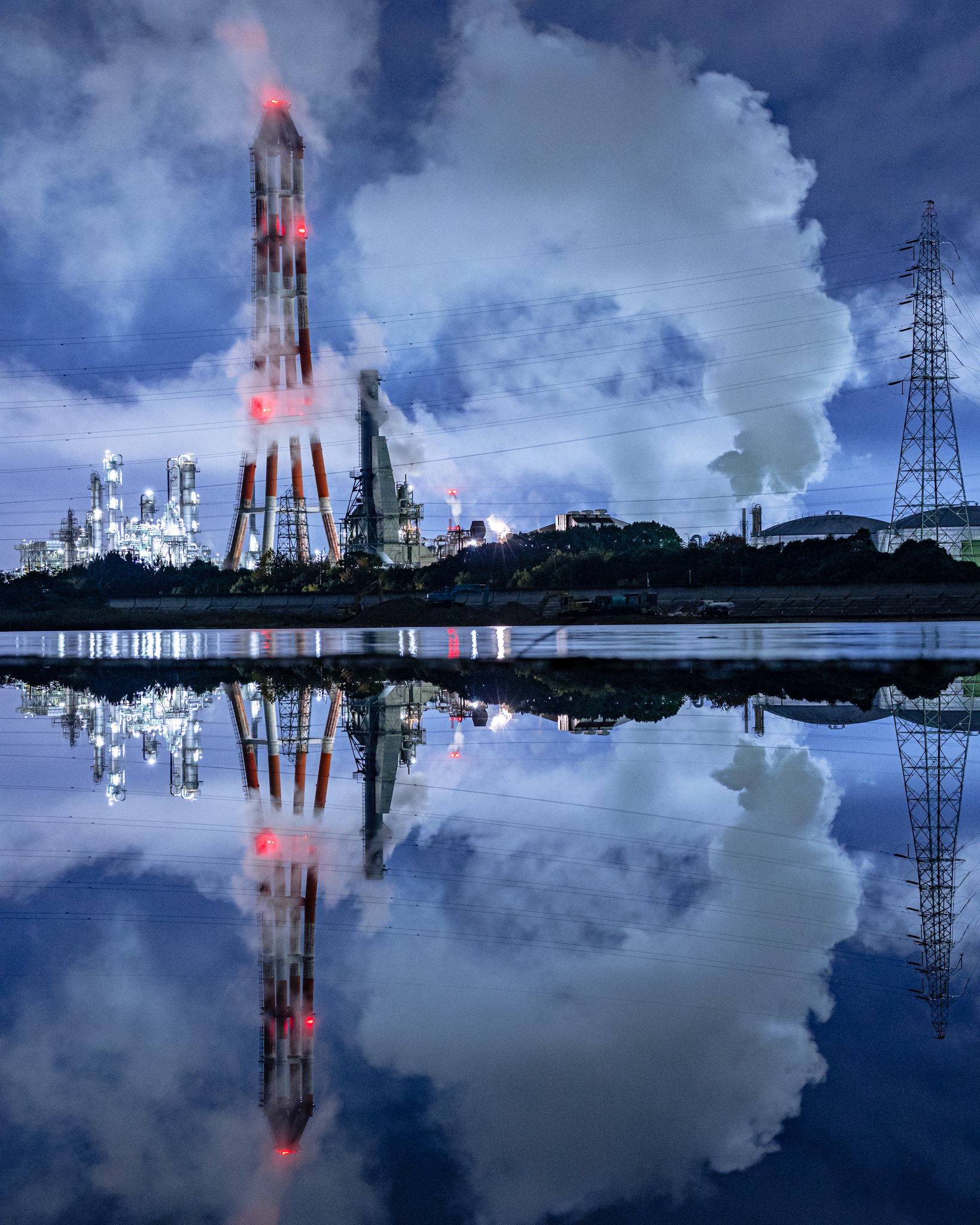 講 評:これぞ工場夜景という一枚。蒸気をシンメトリーに配置したリフレクションが美しい。